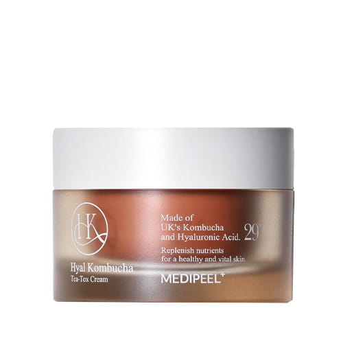 Medi - Peel Hyal Kombucha Tea-Tox Krem do twarzy na bazie kombuchy. Nawilża i rewitalizuje skórę, wspomaga jej regenerację. Krem redukuje widoczność zmarszczek i przebarwienia. Szczególnie polecany skórze odwodnionej i suchej. Krem zawiera: