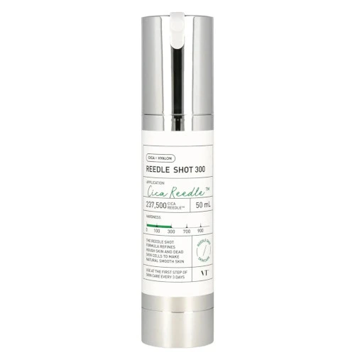 VT Cosmetics VT Reedle Shot 300 booster do twarzy, intensywnie nawilża i regeneruje. Łagodzi podrażnienia, zmniejsza przebarwienia i widoczność blizn. Booster sprawia, że skóra staje się bardziej gładka i miękka, poprawia teksturę skóry. Działa liftingująco, sprawia, że drobne zmarszczki są mniej widoczne. Wyrównuje koloryt, przywraca skórze promienność. Zawiera: